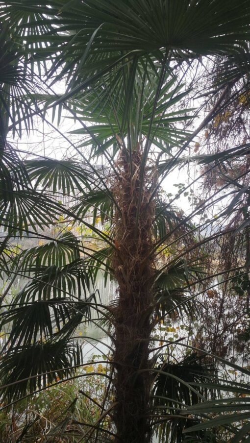 A populair spieces in europe with almost 360° round stiff leaves. The Trachycarpus winsan is frost hardy and makes 5-8 leaves a year. It looks like an Trachycarpus fortunei but isn’t. People select and choosing them for their fantastic more slender look and leaves what is almost round. Also the seed branches are different compared with an normal Trachycarpus fortunei. More robust flower stalk with bigger seeds. Plant care is easy for this spieces. A perfect plant for a small garden of container plant. Speed of growth once in the ground it can grow more than 30 cm (1 ft.) of trunk per year. The Trachycarpus winsan is one or the best looking palms for your tropical garden. We protect our winsan by frost minus -13 by long periodes cold freezing days. Trachycarpus winsan is quite rare at the moment.