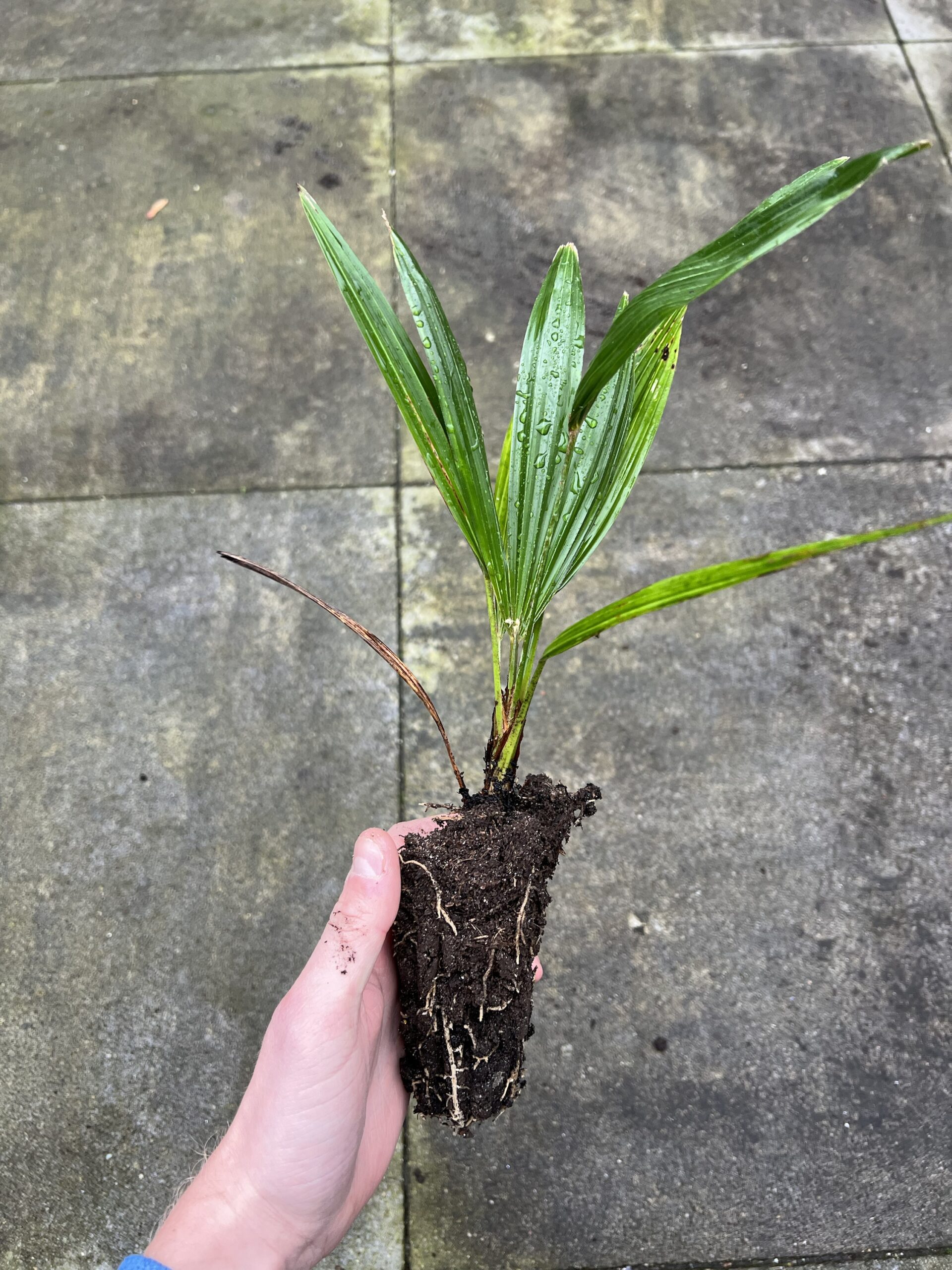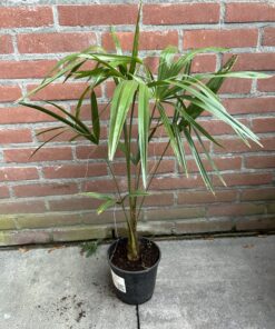Cet hybride entre une femelle Trachycarpus wagnerianus et un mâle Trachycarpus princeps nouvelle forme devrait être l’un des hybrides les plus résistants au froid. Il est intéressant de voir que certains spécimens ressemblent à des wagnerianus normaux avec plus d’argent et que d’autres ont des gènes de Trachycarpus princeps plus compacts. Les feuilles sont plus dures et plus rigides par rapport à un Trachycarpus princeps normal. Elles peuvent supporter plus de vent. Un excellent palmier pour votre jardin. A nos yeux, l’un des plus beaux hybrides jamais créés ! Nous avons ici des plantes plus âgées qui sont vraiment bleuâtres et compactes. Les feuilles sont d’un vert profond et sont un excellent accroche-regard pour votre jardin. Ce palmier hybride est résistant au froid et tolère le vent dans notre climat.